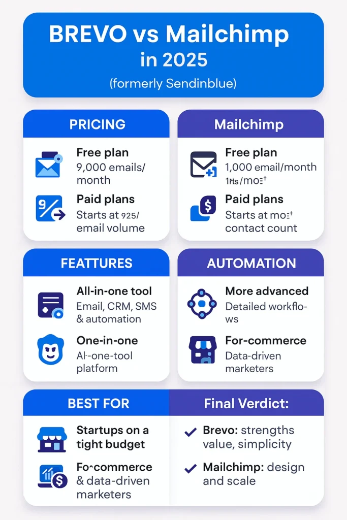 Choosing between Brevo (formerly Sendinblue) and Mailchimp in 2025 isn’t as simple as comparing price tags — both platforms have evolved dramatically over the past few years.
